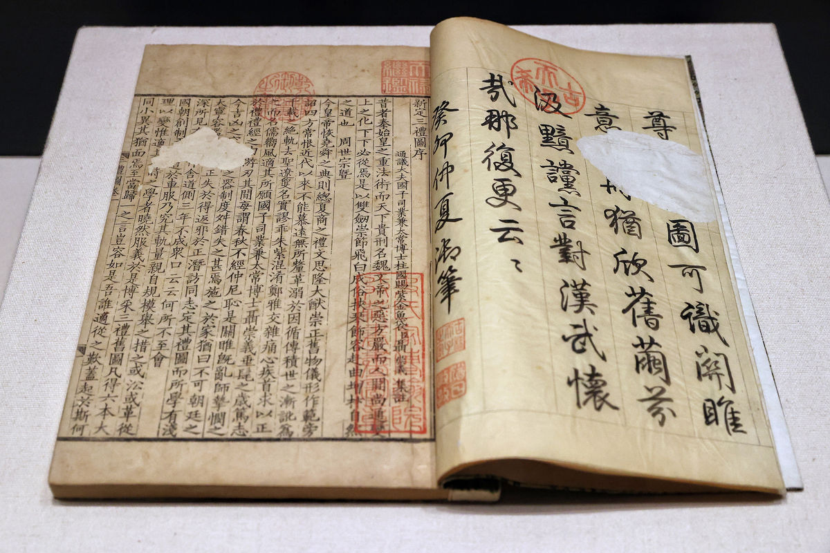 8月3日,展览现场展出的《御题三礼图二十卷》。中国日报记者 姜东 摄